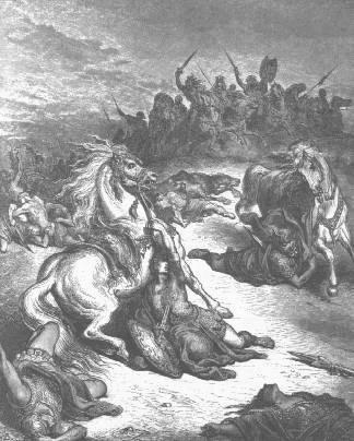 S 31:1 LOS Filisteos pues pelearon con Israel, y los de Israel huyeron delante de los Filisteos, y cayeron muertos en el monte de Gilboa. 1 S 31:2 Y siguiendo los Filisteos a Saúl y a sus hijos, mataron a Jonathán, y a Abinadab, y a Melchîsua, hijos de Saúl. 1 S 31:3 Y agravóse la batalla sobre Saúl, y le alcanzaron los flecheros; y tuvo gran temor de los flecheros. 1 S 31:4 Entonces dijo Saúl a su escudero: Saca tu espada, y pásame con ella, porque no vengan estos incircuncisos, y me pasen, y me escarnezcan. Mas su escudero no quería, porque tenía gran temor. Entonces tomó Saúl la espada, y echóse sobre ella. 1 S 31:5 Y viendo su escudero a Saúl muerto, él también se echó sobre su espada, y murió con él. 1 S 31:6 Así murió Saúl en aquel día, juntamente con sus tres hijos, y su escudero, y todos sus varones. 1 S 31:7 Y los de Israel que eran de la otra parte del valle, y de la otra parte del Jordán, viendo que Israel había huído, y que Saúl y sus hijos eran muertos, dejaron las ciudades y huyeron; y los Filisteos vinieron y habitaron en ellas.