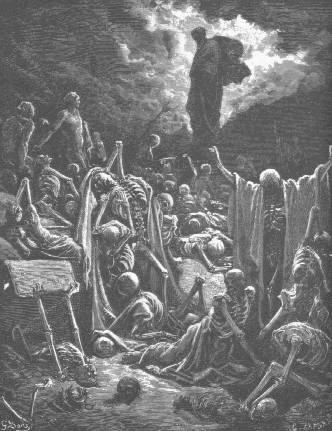 37:1 Y LA mano de Jehová fue sobre mí, y sacóme en espíritu de Jehová, y púsome en medio de un campo que estaba lleno de huesos. Ez 37:2 E hízome pasar cerca de ellos por todo alrededor: y he aquí que eran muy muchos sobre la haz del campo, y por cierto secos en gran manera. Ez 37:3 Y díjome: Hijo del hombre, ¿vivirán estos huesos? Y dije: Señor Jehová, tú lo sabes. Ez 37:4 Díjome entonces: Profetiza sobre estos huesos, y diles: Huesos secos, oid palabra de Jehová. Ez 37:5 Así ha dicho el Señor Jehová a estos huesos: He aquí, yo hago entrar espíritu en vosotros, y viviréis. Ez 37:6 Y pondré nervios sobre vosotros, y haré subir sobre vosotros carne, y os cubriré de piel, y pondré en vosotros espíritu, y viviréis; y sabréis que yo soy Jehová. Ez 37:7 Profeticé pues, como me fue mandado; y hubo un ruido mientras yo profetizaba, y he aquí un temblor, y los huesos se llegaron cada hueso a su hueso. Ez 37:8 Y miré, y he aquí nervios sobre ellos, y la carne subió, y la piel cubrío por encima de ellos: mas no había en ellos espíritu. Ez 37:9 Y díjome: Profetiza al espíritu, profetiza, hijo del hombre, y di al espíritu: Así ha dicho el Señor Jehová: Espíritu, ven de los cuatro vientos, y sopla sobre estos muertos, y vivirán. Ez 37:10 Y profeticé como me había mandado, y entró espíritu en ellos, y vivieron, y estuvieron sobre sus pies, un ejército grande en extremo. Ez 37:11 Díjome luego: Hijo del hombre, todos estos huesos son la casa de Israel. He aquí, ellos dicen: Nuestros huesos se secaron, y pereció nuestra esperanza, y somos del todo talados. Ez 37:12 Por tanto profetiza, y diles: Así ha dicho el Señor Jehová: He aquí, yo abro vuestros sepulcros, pueblo mío, y os haré subir de vuestras sepulturas, y os traeré a la tierra de Israel. Ez 37:13 Y sabréis que yo soy Jehová, cuando abriere vuestros sepulcros, y os sacare de vuestras sepulturas, pueblo mío. Ez 37:14 Y pondré mi espíritu en vosotros, y viviréis, y os haré reposar sobre vuestra tierra; y sabréis que yo Jehová hablé, y lo hice, dice Jehová.
