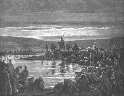 7:1 LEVANTÁNDOSE pues de mañana Jerobaal, el cual es Gedeón, y todo el pueblo que estaba con él, asentaron el campo junto a la fuente de Harod: y tenía el campo de los Madianitas al norte, de la otra parte del collado de More, en el valle. Jue 7:2 Y Jehová dijo a Gedeón: El pueblo que está contigo es mucho para que yo dé a los Madianitas en su mano: porque no se alabe Israel contra mí, diciendo: Mi mano me ha salvado. Jue 7:3 Haz pues ahora pregonar, que lo oiga el pueblo, diciendo: El que teme y se estremece, madrugue y vuélvase desde el monte de Galaad. Y volviéronse de los del pueblo veintidós mil: y quedaron diez mil. Jue 7:4 Y Jehová dijo a Gedeón: Aun es mucho el pueblo; llévalos a las aguas, y allí yo te los probaré; y del que yo te dijere: Vaya este contigo, vaya contigo: mas de cualquiera que yo te dijere: Este no vaya contigo, el tal no vaya. Jue 7:5 Entonces llevó el pueblo a las aguas: y Jehová dijo a Gedeón: Cualquiera que lamiere las aguas con su lengua como lame el perro, aquél pondrás aparte; asimismo cualquiera que se doblare sobre sus rodillas para beber. Jue 7:6 Y fue el número de los que lamieron las aguas, llegándola con la mano a la boca, trescientos hombres: y todo el resto del pueblo se dobló sobre sus rodillas para beber las aguas. Jue 7:7 Entonces Jehová dijo a Gedeón: Con estos trescientos hombres que lamieron el agua os salvaré, y entregaré a los Madianitas en tus manos: y váyase toda la gente cada uno a su lugar. Jue 7:8 Y tomada provisión para el pueblo en sus manos, y sus bocinas, envió a todos los Israelitas cada uno a su tienda, y retuvo a aquellos trescientos hombres: y tenía el campo de Madián abajo en el valle. JUECES