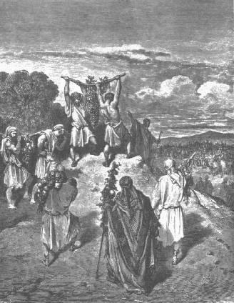 13:23 (13-24) Y llegaron hasta el arroyo de Escol, y de allí cortaron un sarmiento con un racimo de uvas, el cual trejeron dos en un palo, y de las granadas y de los higos. Nm 13:24 (13-25) Y llamóse aquel lugar Nahal-escol por el racimo que cortaron de allí los hijos de Israel. Nm 13:25 (13-26) Y volvieron de reconocer la tierra al cabo de cuarenta días. Nm 13:26 (13-27) Y anduvieron y vinieron a Moisés y a Aarón, y a toda la congregación de los hijos de Israel, en el desierto de Parán, en Cades, y diéronles la respuesta, y a toda la congregación, y les mostraron el fruto de la tierra. Nm 13:27 (13-28) Y le contaron, y dijeron: Nosotros llegamos a la tierra a la cual nos enviaste, la que ciertamente fluye leche y miel; y este es el fruto de ella. NÚMEROS