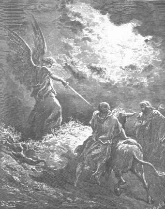 22:21 Así Balaam se levantó por la mañana, y cinchó su asna, y fue con los príncipes de Moab. Nm 22:22 Y el furor de Dios se encendió porque él iba; y el ángel de Jehová se puso en el camino por adversario suyo. Iba, pues, él montado sobre su asna, y con él dos mozos suyos. Nm 22:23 Y el asna vió al ángel de Jehová, que estaba en el camino con su espada desnuda en su mano; y apartóse el asna del camino, e iba por el campo. Entonces hirió Balaam al asna para hacerla volver al camino. Nm 22:24 Mas el ángel de Jehová se puso en una senda de viñas que tenía pared de una parte y pared de otra. Nm 22:25 Y viendo el asna al ángel de Jehová, pegóse a la pared, y apretó contra la pared el pie de Balaam: y él volvió a herirla. Nm 22:26 Y el ángel de Jehová pasó más allá, y púsose en una angostura, donde no había camino para apartarse ni a diestra ni a siniestra. Nm 22:27 Y viendo el asna al ángel de Jehová, echóse debajo de Balaam: y enojóse Balaam, e hirió al asna con el palo. Nm 22:28 Entonces Jehová abrió la boca al asna, la cual dijo a Balaam: ¿Qué te he hecho, que me has herido estas tres veces? Nm 22:29 Y Balaam respondió al asna: Porque te has burlado de mí: ¡ojalá tuviera espada en mi mano, que ahora te mataría! Nm 22:30 Y el asna dijo a Balaam: ¿No soy yo tu asna? sobre mí has cabalgado desde que tú me tienes hasta este día; ¿he acostumbrado a hacerlo así contigo? Y él respondió: No. Nm 22:31 Entonces Jehová abrió los ojos a Balaam, y vió al ángel de Jehová que estaba en el camino, y tenía su espada desnuda en su mano. Y Balaam hizo reverencia, e inclinóse sobre su rostro. Nm 22:32 Y el ángel de Jehová le dijo: ¿Por qué has herido tu asna estas tres veces? he aquí yo he salido para contrarrestarte, porque tu camino es perverso delante de mí: Nm 22:33 El asna me ha visto, y hase apartado luego de delante de mí estas tres veces: y si de mí no se hubiera apartado, yo también ahora te mataría a ti, y a ella dejaría viva. Nm 22:34 Entonces Balaam dijo al ángel de Jehová: He pecado, que no sabía que tú te ponías delante de mí en el camino: mas ahora, si te parece mal, yo me volveré. Nm 22:35 Y el ángel de Jehová dijo a Balaam: Ve con esos hombres: empero la palabra que yo te dijere, esa hablarás. Así Balaam fue con los príncipes de Balac.